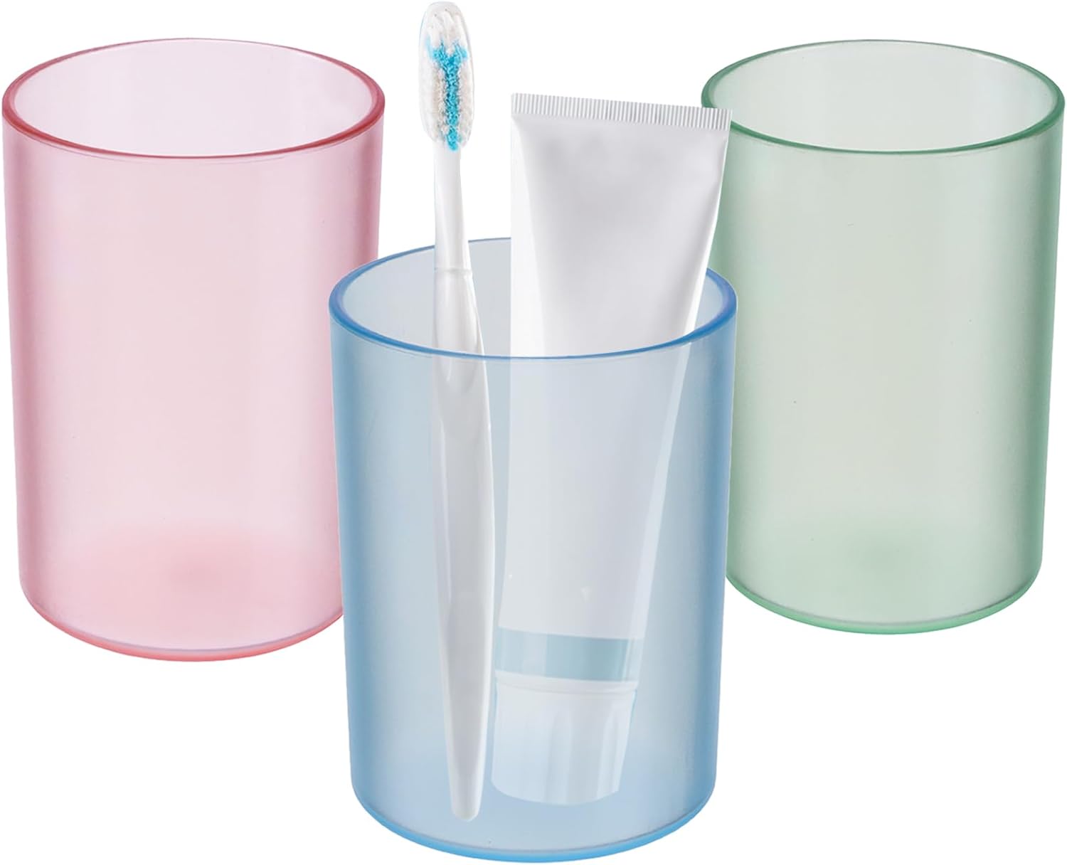 3 Pack Bathroom Tumbler Unbreakable Toothbrush Cups, Plastic Toothbrush Holder, Reusable Mouthwash Cup Bathroom Cup Drinking Cups Makeup Brush Holder (Matte 3 Colors)